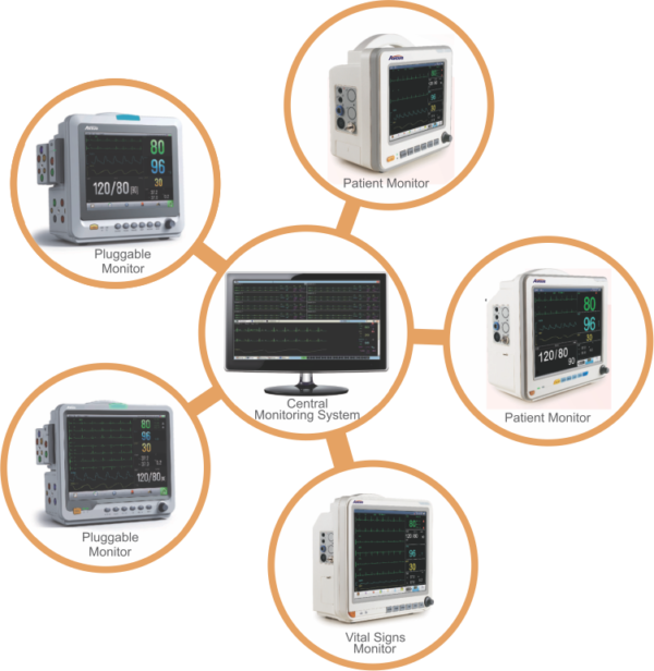 • Standard configuration with connection of 8 bedside machines, and can be expanded up to 32 bedside machines.