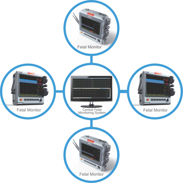 Large-screen display, which can observe waveform parameter information of 8 beds simultaneously and all real-time information of a given bed or can be set as dual screen 16-bed observations.